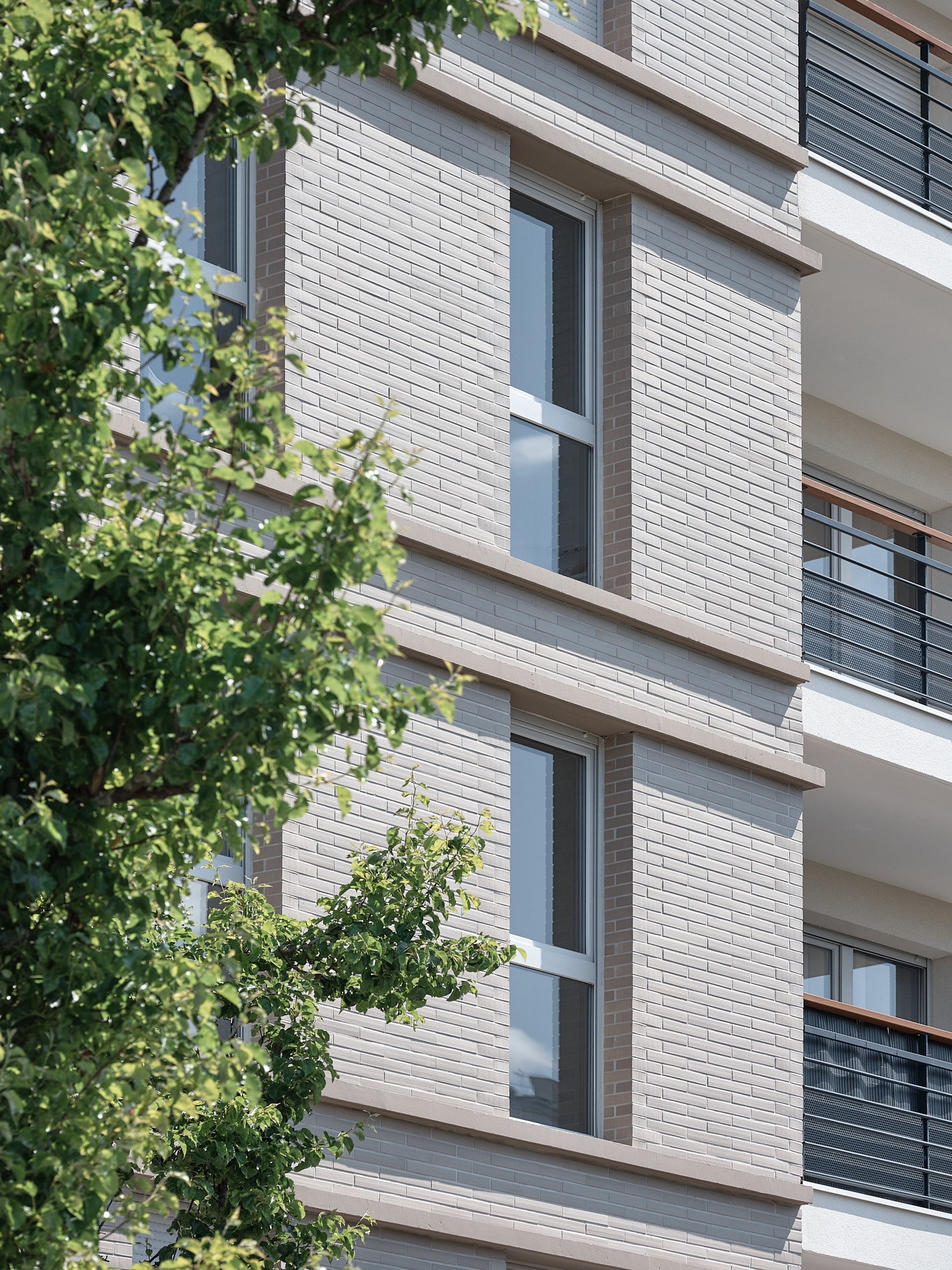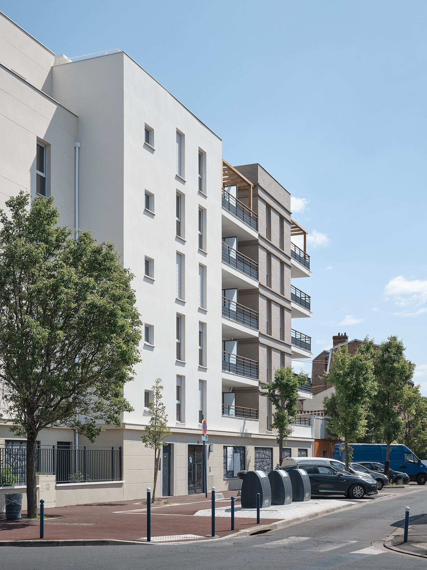 Pour cela, l’accent a été mis sur une architecture à taille humaine, élégante et soignée, notamment par la succession harmonieuse des volumes et le choix des matériaux, qui permet alors une inscription douce dans la couture urbaine.